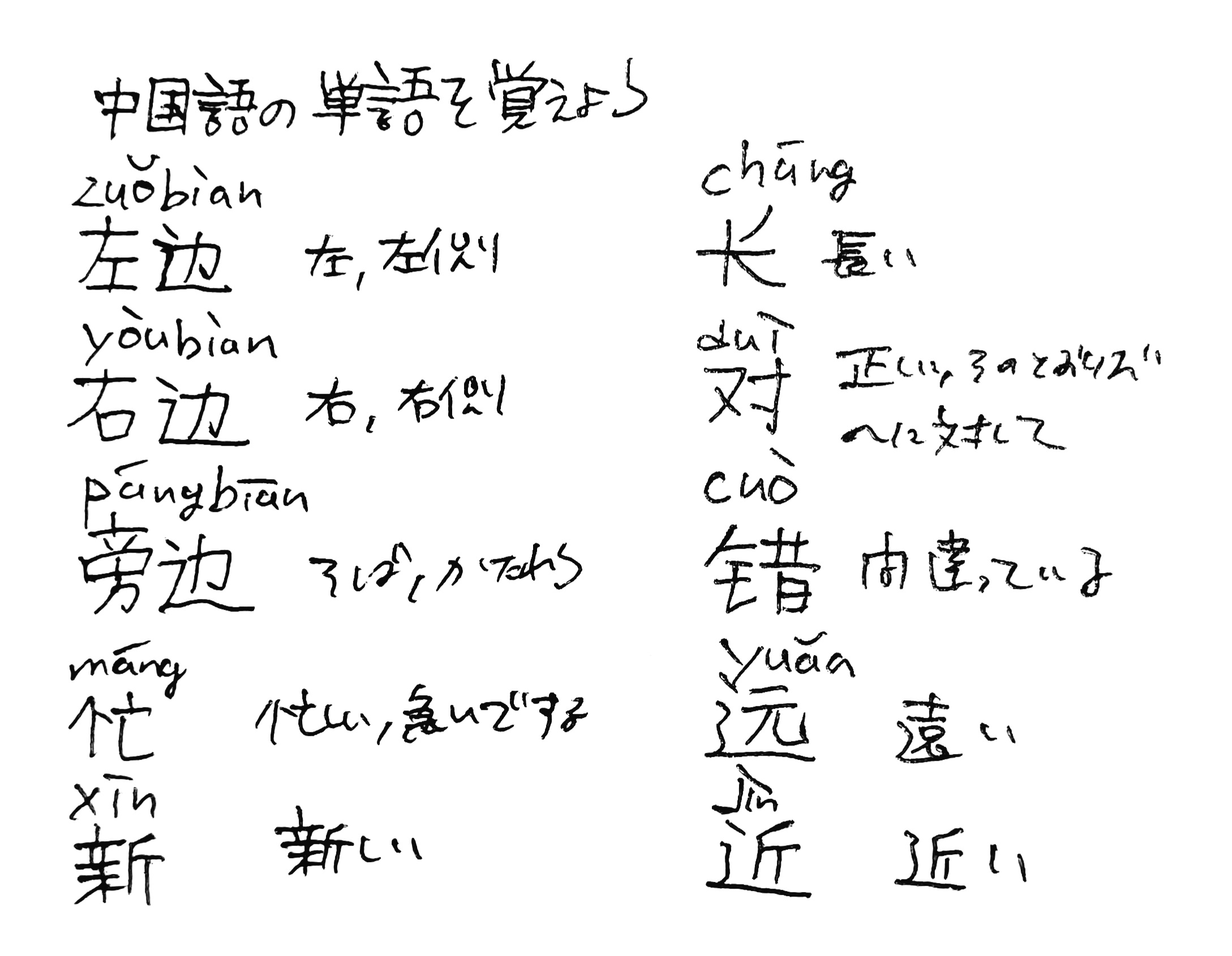 中国語の単語を覚えよう