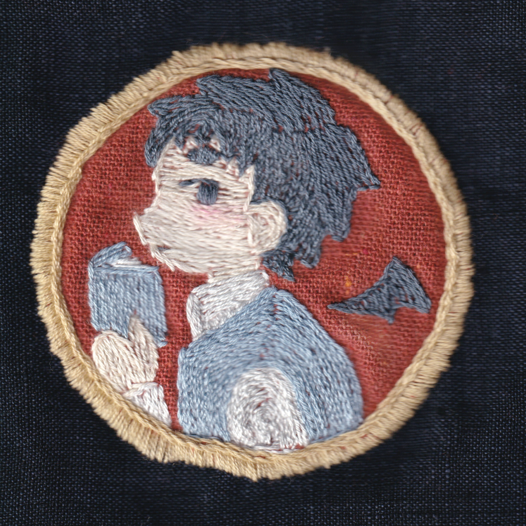 UTAUキャラクター「とーごイ洋志」をモチーフにした刺繍の習作作品です。